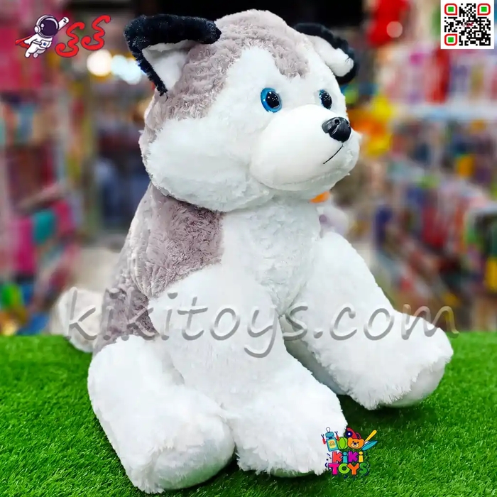 عروسک سگ هاسکی نشسته بزرگ که از الیاف و پارچه بسیار نرم و لطیف ساخته شده است و کودکان براحتی می توانند با آن بازی کنند.سگ هاسکی نشسته یک عروسک توبغلی نرم و اسباب بازی بسیار جذاب برای کودکان می باشد.