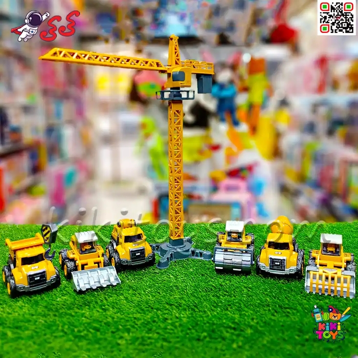 اسباب بازی ست ماشین های فلزی راهسازی و شهرسازی با جرثقیل برجی ALLOY TRUCK GLW 8865