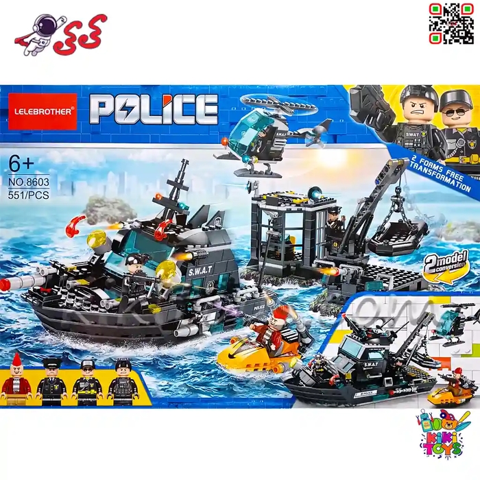 لگو سیتی مدل پلیس نیروی ویژه دریایی برند LELEBROTHER شامل چندین مدل قایق، هلیکوپتر و ایستگاه لگویی است. این مجموعه جذاب امکان ساخت دو مدل مختلف از تجهیزات نیروی ویژه دریایی را برای کودکان فراهم می‌کند.