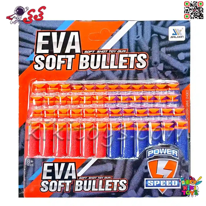 بسته ۴۸ عددی تیر فومی و اسفنجی با سر چسبانک‌دار، مناسب برای تفنگ‌های طرح نرف. شامل دو رنگ آبی و قرمز، اندازه تیرها ۷.۵ سانتی‌متر، سبک، ایمن و سازگار با تمامی تفنگ‌های اسباب‌بازی.