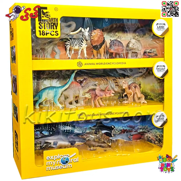 ست ۱۸ عددی فیگور حیوانات جنگلی، دریایی و دایناسور برند Earth Story | مناسب آموزش و بازی کودکان بالای ۳ سال