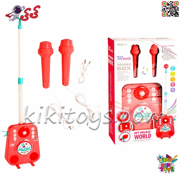 اسپیکر و میکروفون موزیکال کودکانه مدل 1092 | باکس موسیقی با نورپردازی و ضبط صدا