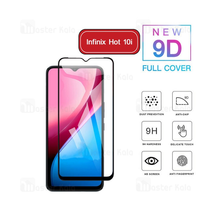 محافظ صفحه شیشه ای تمام صفحه تمام چسب اینفینیکس Infinix Hot 10i 9D Glass