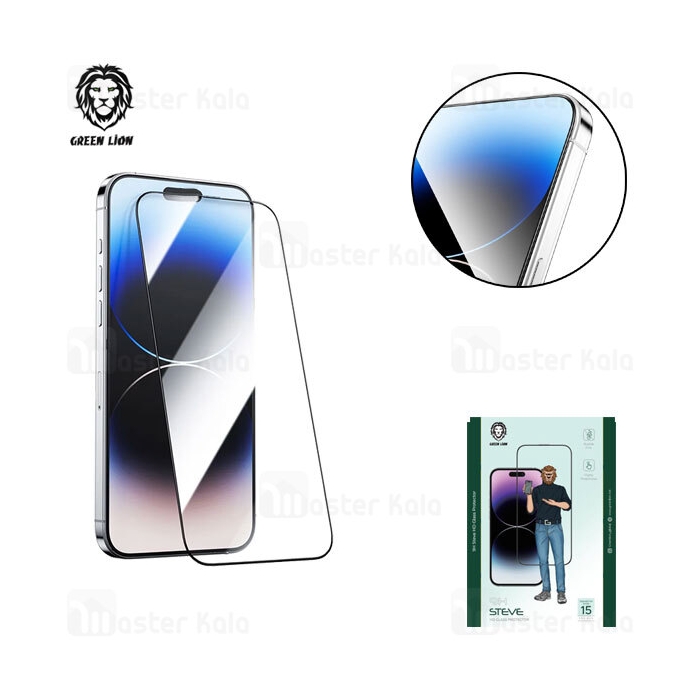 گلس تمام صفحه تمام چسب آیفون گرین لاین Apple iPhone 15 Pro Green Lion 9H Steve