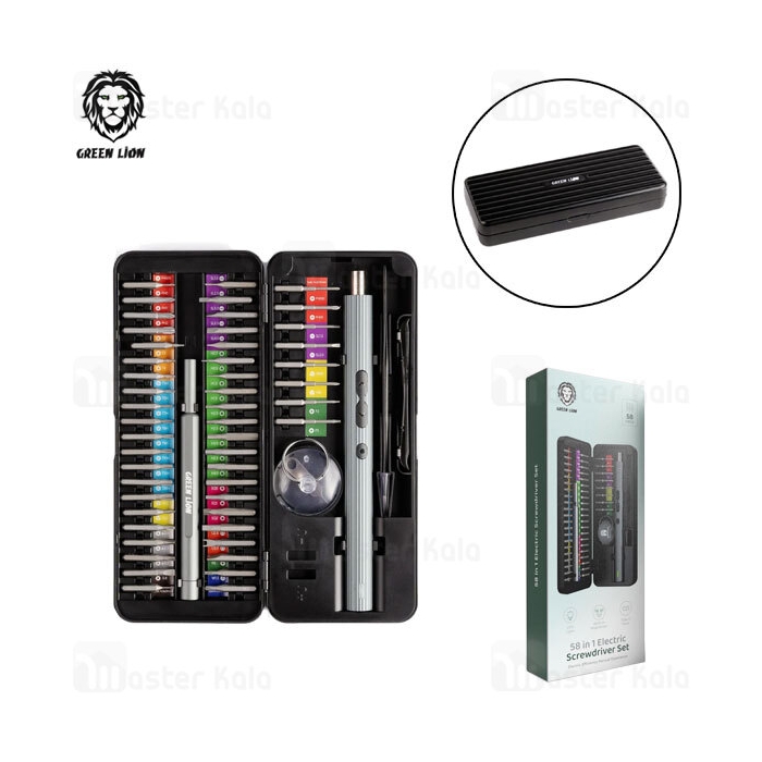 کیت پیچ گوشتی شارژی گرین لاین Green Lion 58 IN 1 Electric Screwdriver Set GN58IN1ELSDBK