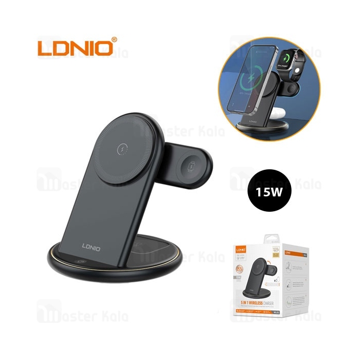 استند و شارژر وایرلس چند کاره مگنتی الدینیو Ldnio WL02 توان 15 وات با قابلیت شارژ اپل واچ