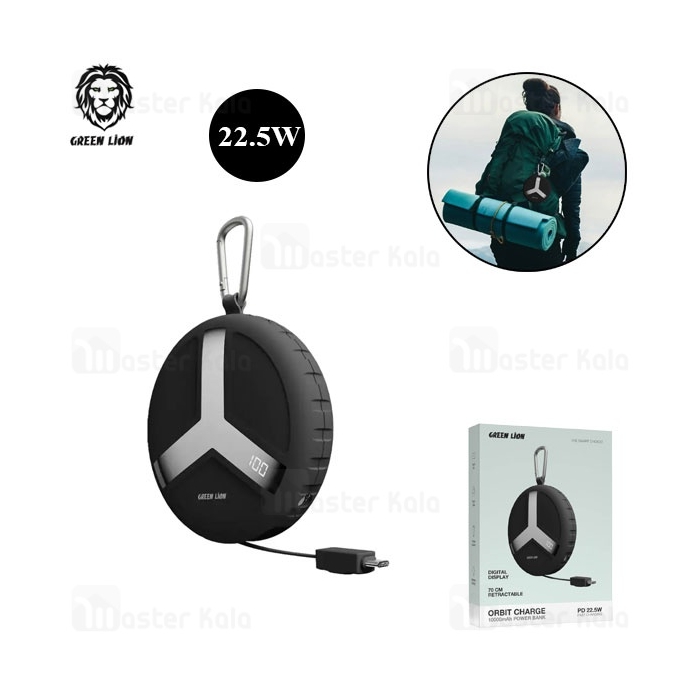 پاوربانک 10000 گرین لاین Green Lion Orbit Charge GNORCH10PBBK توان 22.5 وات همراه با کابل متصل