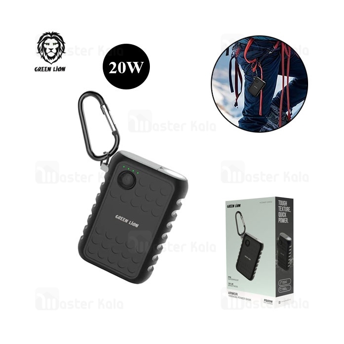 پاوربانک 10000 گرین لاین Green Lion Armor GNULTHIN20BK توان 20 وات دارای چراغ قوه