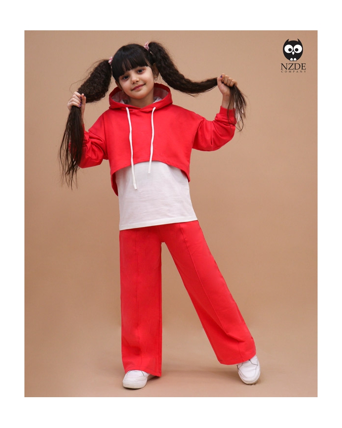 سه تیکه شامل هودی کراپ و شلوار و تاپ می باشد