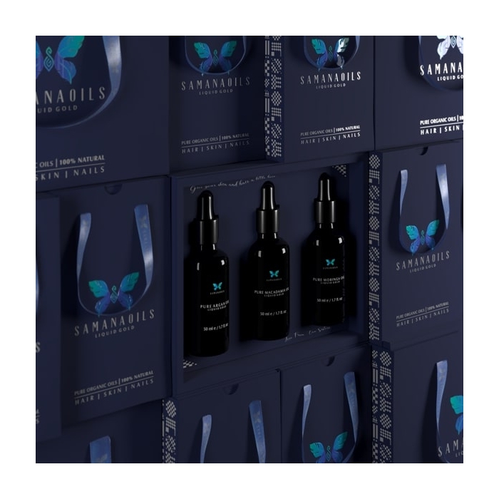 این پک شامل سه عدد روغن 50 میل آرگان، ماکادمیا و مورینگا است و از محبوبترین و پرفروشترین پکهای مجموعه سامانا اویل به حساب میآید. سه عدد از بهترین روغنهای مجموعه سامانا اویل که در یک دوره مشخص از خواص فوقالعاده این سه روغن به طور همزمان جهت استفاده پوست صورت، بدن و مو و ناخنها بهرهمند خواهید شد. این پک جهت کلاژنسازی و جوانسازی پوست و رفع چروکهای ریز صورت تاثیرات بینظیری دارد. همچنین به منظور آبرسانی و رطوبترسانی پوست و مو، جلوگیری از ایجاد موخوره، درمان اگزما و پسوریازیس، حفظ سلامت اسکالپ، رفع ریزش موها، تقویت و تغذیه موها، نرمی و لطافت موها، رشد بیشتر و رشد مجدد موهای ریخته شده، رفع لکهای پوستی و شفافیت و روشنی پوست، و تعویق علائم پیری کاربرد بسیاری دارد. این پک به دلیل بافت سبکی که دارد برای هر نوع پوست و مویی مناسب است. به دلیل صد در صد خالص بودن و غنی بودن روغنها، این پک، حداقل به مدت 7 ماه برای مصارف پوست، مو و ناخن کافی است.