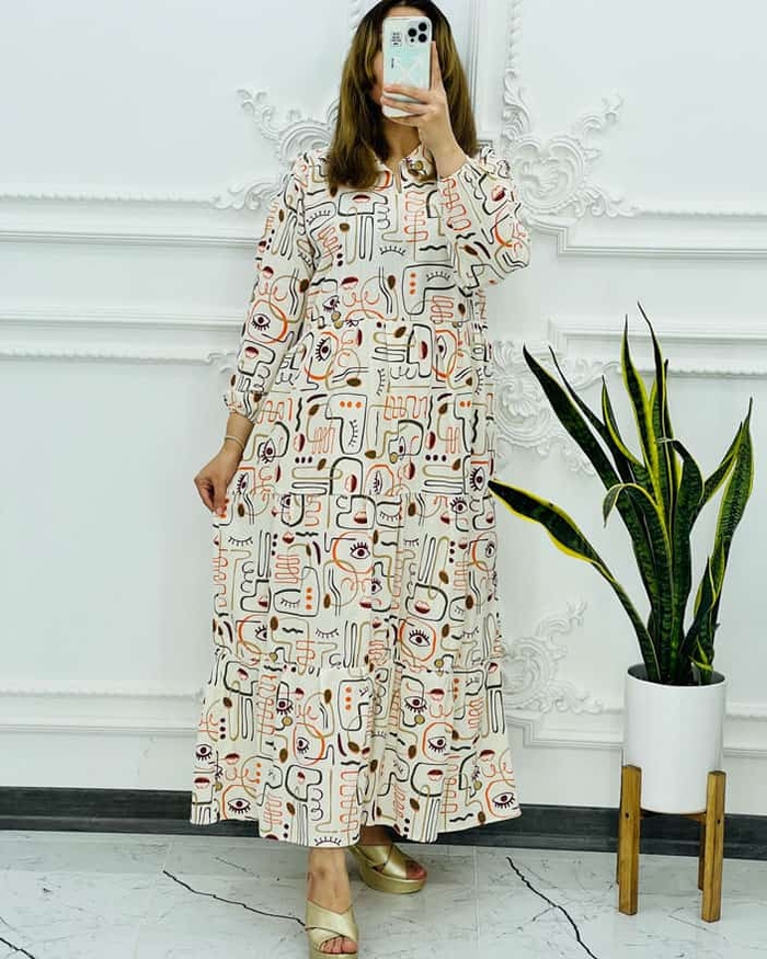 پیراهن مانتویی لینن طرح چشم-سایزبندی:فری سایز(مناسب38تا48)-دورسینه:110سانت-دورحلقه بازو:50سانت-قدآستینک50سانت-دورباسن:140سانت-قدکار از سرشانه:130سانت-پیراهن مانتوی یقه دار طرح چشم طرح جدید جنس پارچه لنین نرم راحت خنک