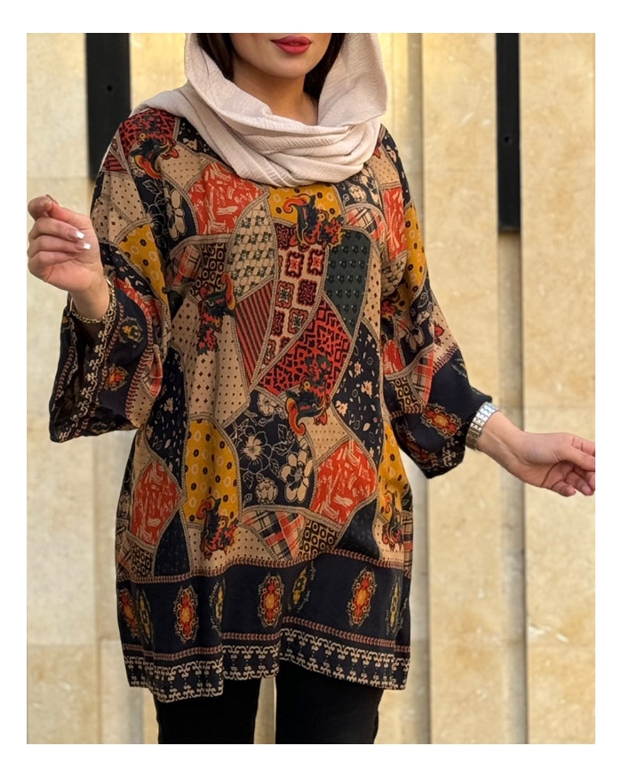جنس نخی شسته شده بدون آبرفت فول قواره بزرگ-گشادی دور سینه 140 سانت-دور باسن 145 سانت-دورحلقه آستین 56 سانت-قد آستین 27 سانت-بلندی قد تونیک 88 سانت-