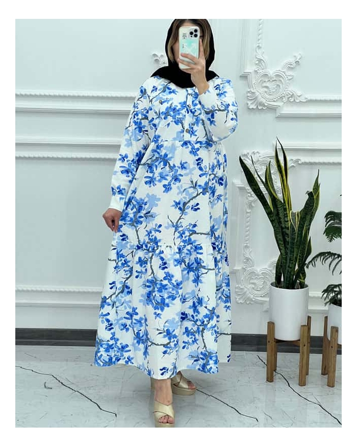 پیراهن لینن فلوریا-فری سایز مناسب 40 تا 50-دورسینه 124 سانت-دورباسن 144 سانت-دور حلقه آستین 46 سانت-قد آستین 50 سانت-قد پیراهن از سرشانه 135 سانت