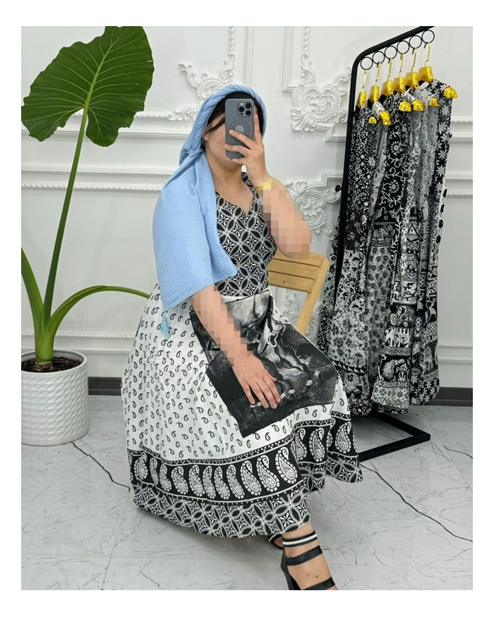 فری سایز:(مناسب سایز 36 الی 44 گاها 46)-دورسینه 106 سانت-قد کار حدود:125سانت