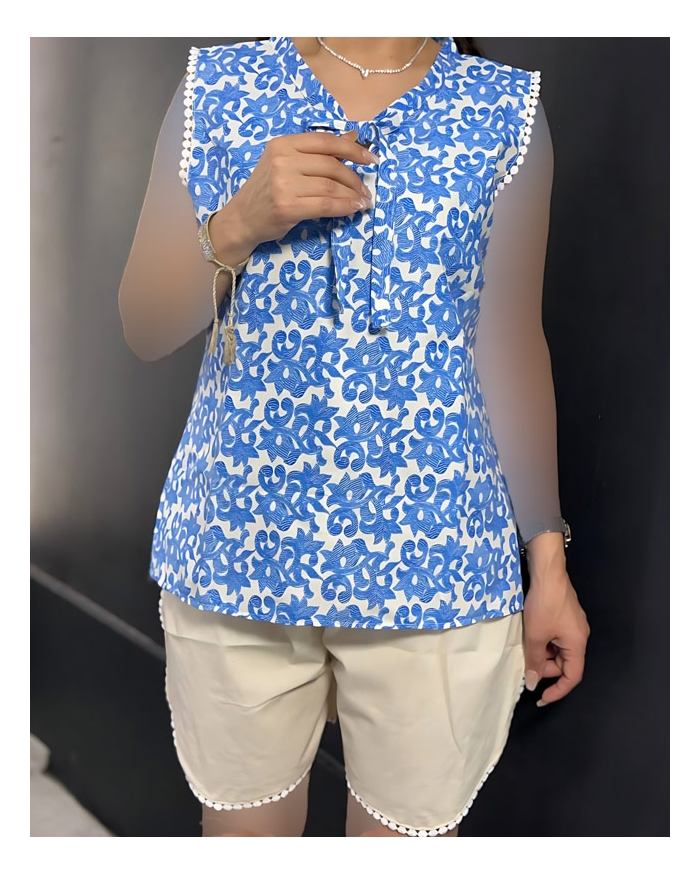 دور سینه 106 سانت-دور حلقه آستین 56 سانت-قد بلوز 67 سانت-دور کمر با کشسانی 128 سانت-دور ران 70 سانت-قد شلوارک 40 سانت