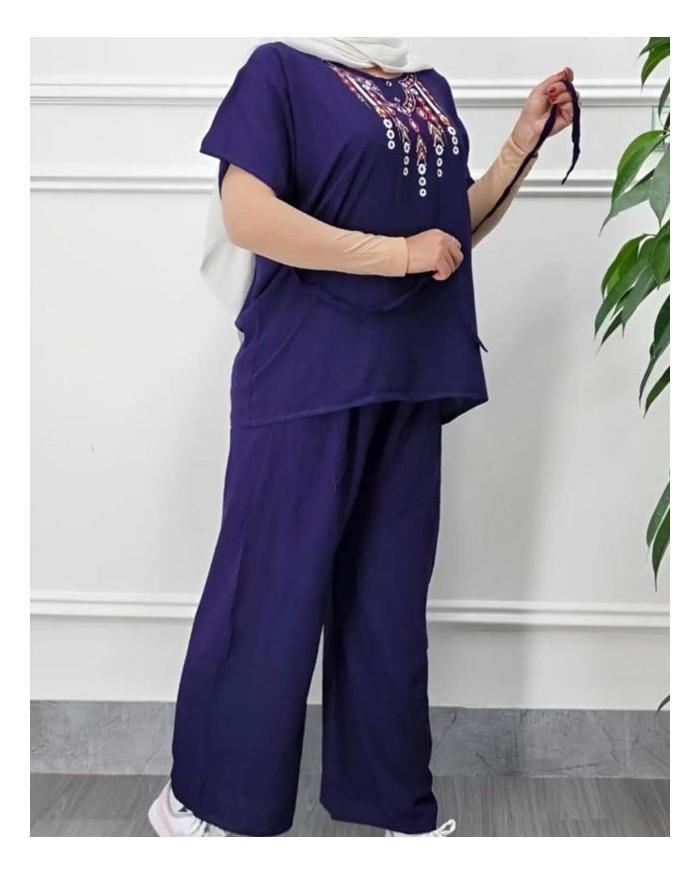 جنس نخی سبک و خنک پارچه اورجینال-فری سایز مناسب سایز 36 تا 48-دورسینه بلوز 120سانت-دورحلقه آستین 49 سانت-قد بلور 67 سانت-دور کمر شلوار با کشسانی 120 سانت-دور باسن 130 سانت-دور ران 60 سانت-قد فاق 34 سانت-قد شلوار 95 سانت