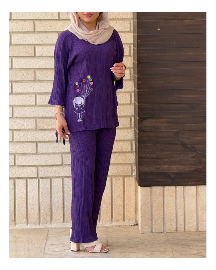دور سینه 130cm-دور حلقه آستین 42cm-قدلباس 67cm-دور کمر در حال کشسانی 124cm-قد شلوار100cm