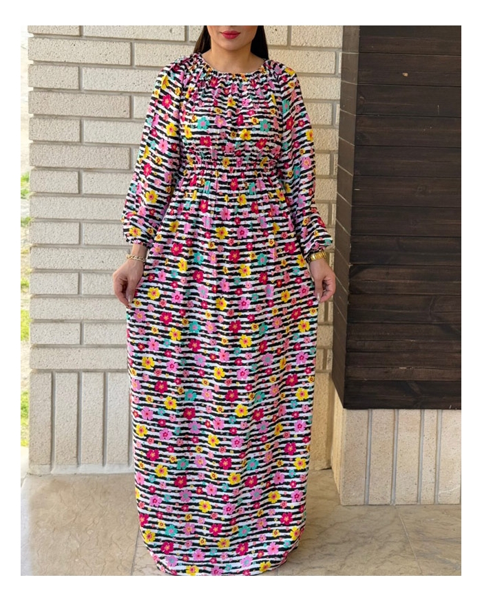 جنس نخی راحت سبک و خنک-فری سایز مناسب سایز 38 تا 50-دورسینه 130 سانت-دورباسن 140 سانت-دورحلقه آستین 48 سانت-قد استین 55 سانت-قد کار 135 سانت