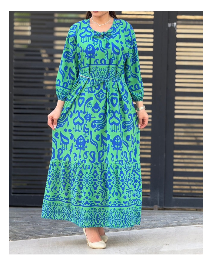 فری سایز مناسب سایز 38 تا 48-اندازه دور سینه 110 سانت-دور باسن 156 سانت-دور حلقه آستین 52 سانت-قد آستین 52 سانت-قد پیراهن 130 سانت