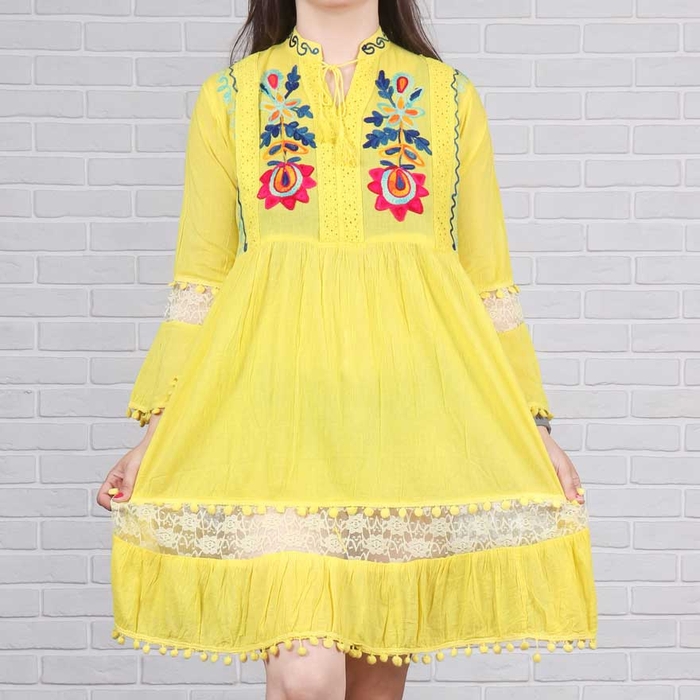 پیراهن کوتاه منگوله دار مناسب برای فصل بهار و تابستان است ، که در 2 سایز موجود می باشد.-سایز1:مناسب(40تا44)-سایز2:مناسب(44تا48)-دورسینه سایز یک:106سانت-دورسینه سایز دو:116سانت-گشادی دور باسن:160سانت-قد کار:95سانت-قد آستین:50سانت