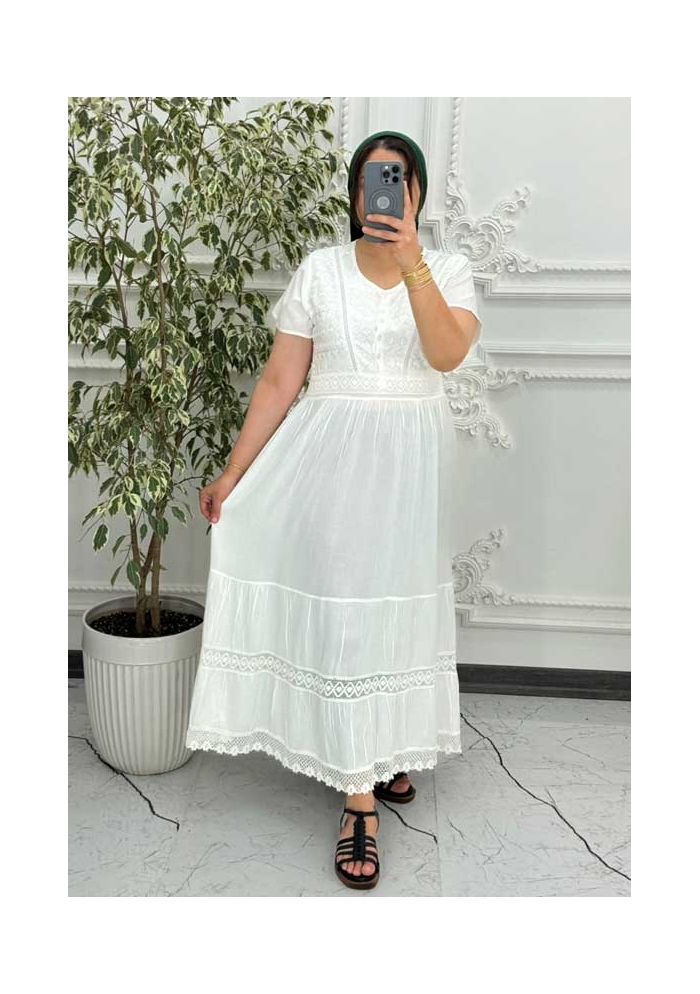 فری سایز:مناسب سایز38تا48-دورسینه:110سانت-دورحقه آستین: 50سانت-قدآستین: 16سانت-قد کار:130سانت- -این پیراهن وارداتی بسیار با کیفیت و شیک می باشد چون جلوی کار دکمه دارد برای خانم های شیرده هم مناسب است.