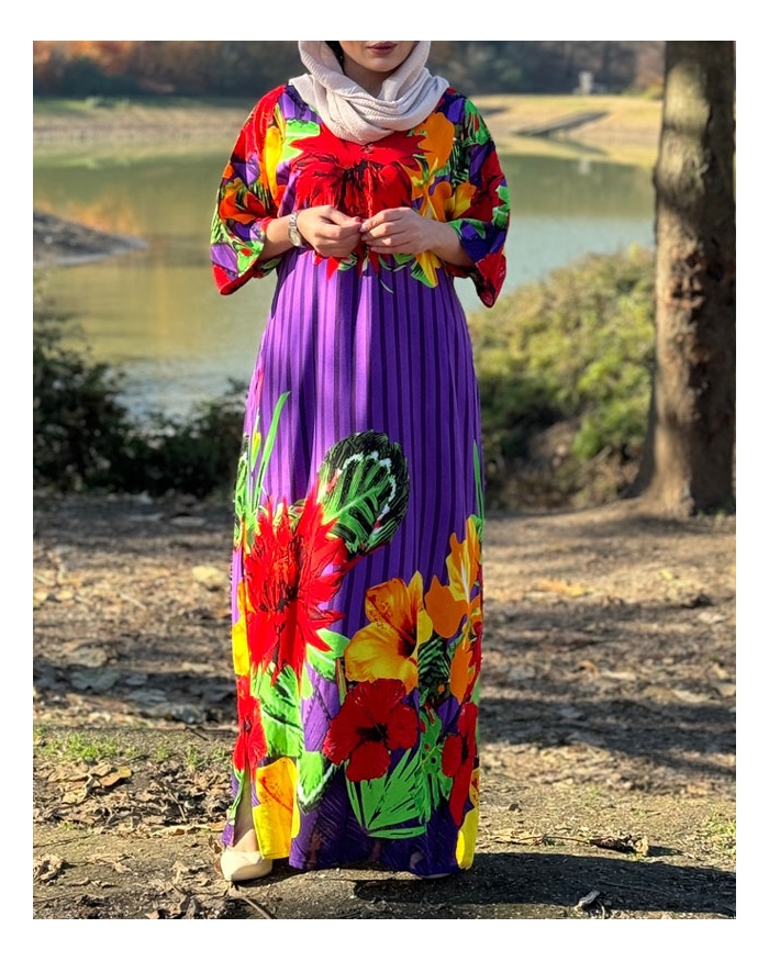 فری سایز مناسب سایز 38 تا 50-اندازه دور سینه 130-اندازه دور باسن 130-دور حلقه آستین 50 سانت-قد لباس 135 سانت-