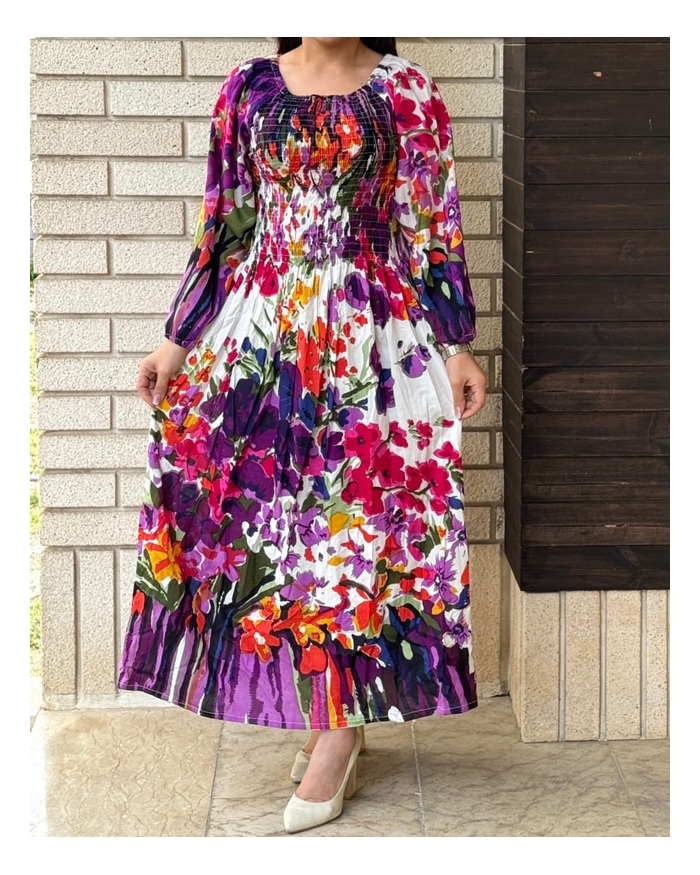 فری سایز مناسب سایز 40 تا 50-دور سینه 160cm-قد آستین 64cm-دور حلقه آستین 52cm-دور باسن 210cm-قد 130cm-جنس نخ کریشه هندی