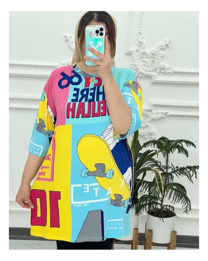تیشرت لانگ وارداتی-فری سایز(40الی 60)-دورسینه 140سانت-دوربازو 50 سانت-قد آستین 30 سانت-قد لانگ:90سانت-فول کشپ-از انتخاب های مناسب و ایده آل برای ست کردن با تیشرت لانگ زنانه استایل کردن آن با شلوار جین جذب است. از طرفی علاوه بر شلوار جین می توانید از شلوارک و یا دامن هم برای استایل با تی شرت لانگ دخترانه بهره ببرید-