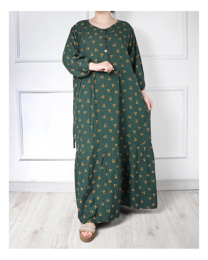فری سایز مناسب سایز 38 تا 46-اندازه دور سینه 110 سانت-دور باسن 140 سانت-قد کار 135 سانت-دکمه جلوی پیراهن قابلیت باز و بسته شدن دارد که مناسب دوران شیردهی است . پیراهن در قسمت کمر ، بند دارد که مناسب هر سایز میتوان تنظیم کرد.