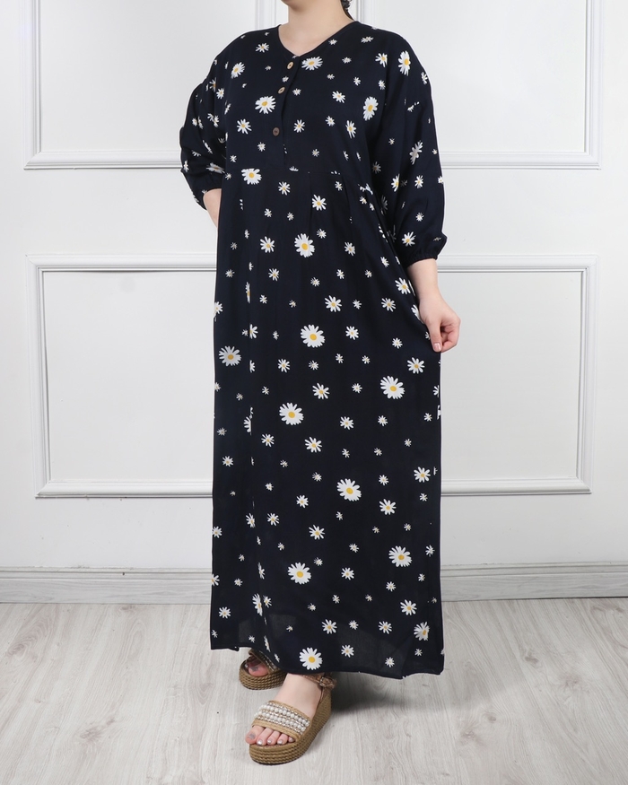 فری سایز مناسب سایز 38 تا 46-اندازه دور سینه 110 سانت-دور باسن 130 سانت-قد کار حدود 130 سانت-دکمه جلوی پیراهن قابلیت باز و بسته شدن دارد که مناسب دوران شیردهی است . پیراهن در قسمت کمر ، بند دارد که مناسب هر سایز میتوان تنظیم کرد