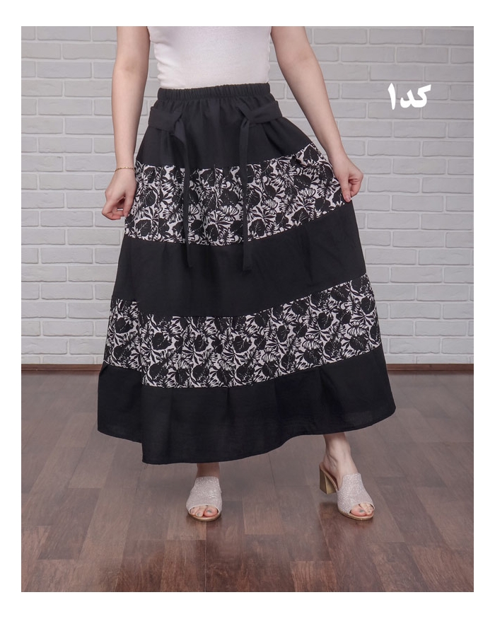 فری سایز مناسب سایز 36 تا 50-گشادی دور کمر در حالت کشسانی 125 سانت-گشادی دور باسن 160 سانت-قد کار 90 سانت-دامن کمربند دارد و قابل باز و بسته شدن است.