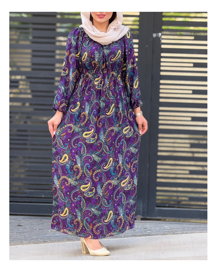جنس پارچه نخی شسته شده ،بدون آبرفت بسیارخنک و راحت، دوریقه و زیر سینه کش کار شده-فری سایز( مناسب سایز38تا سایز ۴۸)-دور حلقه آستین 45-دورسینه 120سانت-دورباسن 135سانت-قد کار 130 سانت