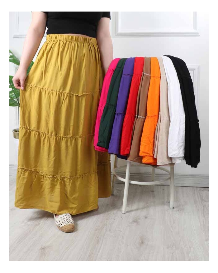 جنس نخی سبک و خنک-فری سایز مناسب سایز 38 تا 50-دور کمر با کشسانی 134سانت-دور باسن 145 سانت-قد دامن 100 سانت