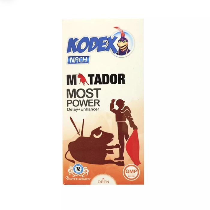 کاندوم تأخیری ماتادور کدکس 12 عددی Kodex Matador Most Power Condom 12PCS، حاوی ماده تاخیری موثر و دارای خارها و حلقههای متعدد و شیارهای منظم است و به تحریک جنسی-بیشتر و افزایش لذت جنسی کمک میکند. این محصول با رایحه مطبوع، دارای نوک ذخیره برای امنیت بیشتر رابطه بوده و در پیشگیری از بیماری های مقاربتی و بارداری ناخواسته موثر است.- -