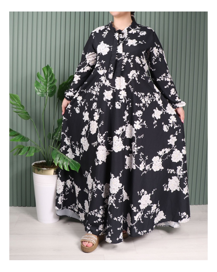 جنس کرپ فلور-کاملاً بلند و پوشیده – بدون بدننمایی • رنگ ثابت، بدون آبرفت • فریسایز (مناسب سایز ۴۰–۴۸) • بند تنظیم یقه و کمر برای فیت دلخواه • پایدامن کاملاً کلوش و آزاد؛ آزادیِ حرکت و فرم زیبا • گشادی دور سینه: ۱۱۲ سانتیمتر