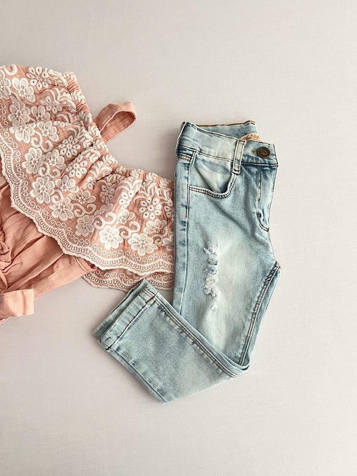 اگر به دنبال یک ست شیک و راحت برای دختر کوچولوی خود هستید، این ست دو تیکه شومیز و شلوار ترک بهترین انتخاب است. طراحی خاص و جذاب این محصول، استایل کودک را کاملاً متفاوت و چشمگیر میکند.-این ست شامل یک شومیز بندی کار شده با تور گلدار ظریف و یک شلوار جین خوشفرم است که در کنار هم ترکیبی فوقالعاده برای استفاده روزمره، مهمانیها و عکاسی ایجاد میکنند.-راهنمای سایز بندی:-3 سال : قد شلوار 48 سانت – دور کمر 48 سانت – فاق شلوار : 16 سانت – قد شومیز از سرشانه : 37 سانت-4 سال : قد شلوار 53 سانت – دور کمر 52 سانت – فاق شلوار : 17 سانت – قد شومیز از سرشانه : 38 سانت-5 سال : قد شلوار 56 سانت – دور کمر 56 سانت – فاق شلوار : 18 سانت – قد شومیز از سرشانه : 39 سانت-این ست دخترانه ترک ترکیبی از راحتی و زیبایی است و باعث میشود کودک شما در هر جمعی بدرخشد. کیفیت عالی پارچه و دوخت حرفهای، تضمین میکند که با شستشو و استفاده مکرر، زیبایی لباس همچنان حفظ شود