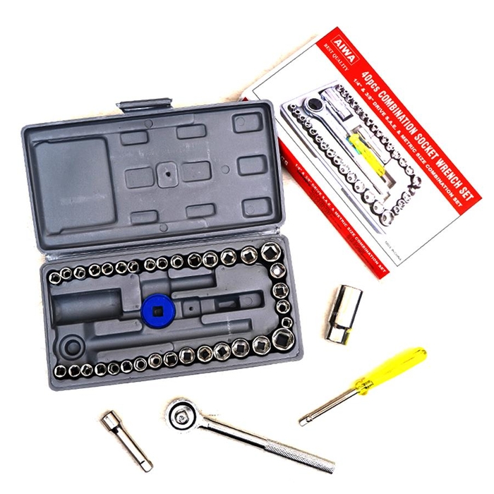 🔰 جنس بدنه : کروم وانادیوم-🔰 جنس جعبه : فایبرگلاس-🔰 نوع دسته : استاندارد-🔰 ابعاد : 28 × 12 × 4 سانتی متر-🔰 یک عدد دسته جغجغه-🔰 یک عدد رابط افزاينده طول 7 سانتیمتر-🔰 یک عدد رابط پيچگوشتی به طول 14 سانتیمتر و قطر سری 4 ميلیمتر-🔰 سری کامل ریز تا درشت آچار بکس 40 تکه-🔰 دارای تبدیل بکس های 1/4 به 3/8 و اچار شمع ماشین، بکس کمکی-🔰 مناسب برای خودرو منزل موتورسیکلت و مصارف خانگی- -