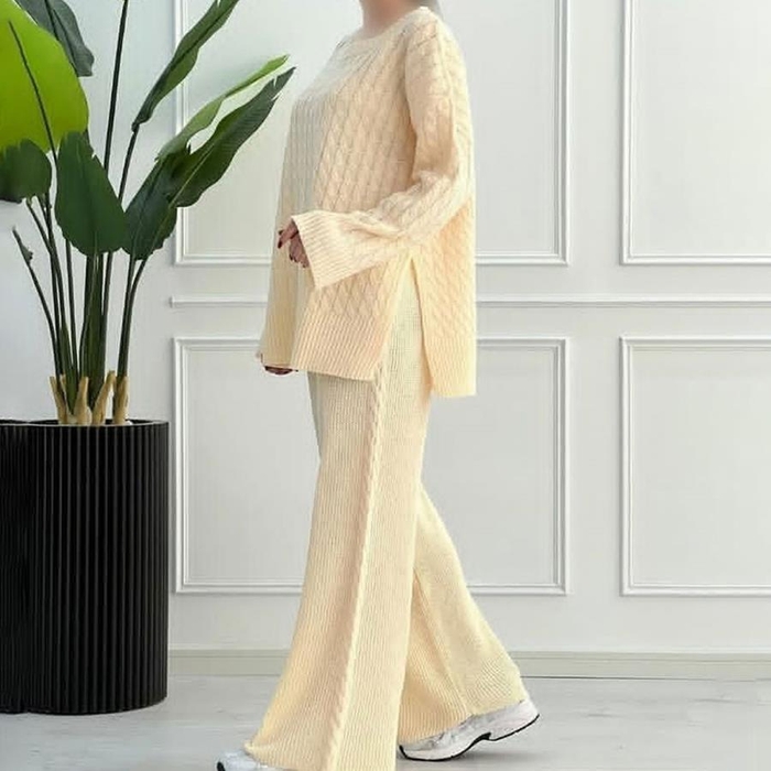 ست بافت بلوز و شلوار زنانه Diyana_Cream مدل 3736